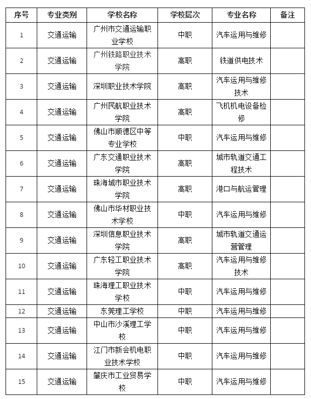 2、广东省申报全国职业院校交通运输类示范专业点拟推荐名单